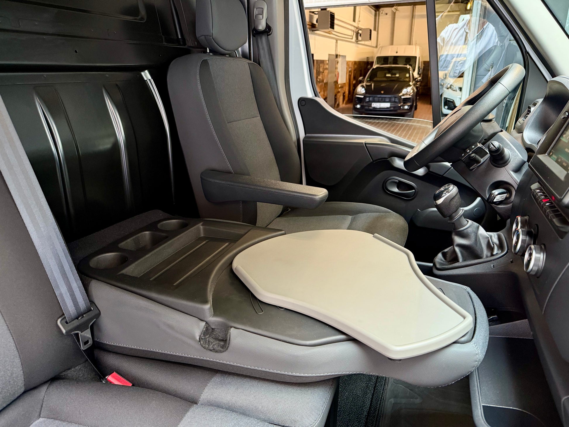 - Sitze im Fahrerhaus: Beifahrerdoppelsitz multifunktional mit Staufach